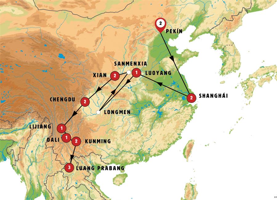 Disfruta de un recorrido grupal en autobús con guía en español durante 17 días, visitando 13 ciudades. Incluye alojamiento en hoteles y desayunos diarios. Turismo guiado por PEKÍN, SHANGHÁI, LUOYANG, LONGMEN, SANMENXIA, XIAN, CHENGDU, LIJIANG, ZHOUCHENG, XIZHOU, DALI, KUNMING, LUANG PRABANG.